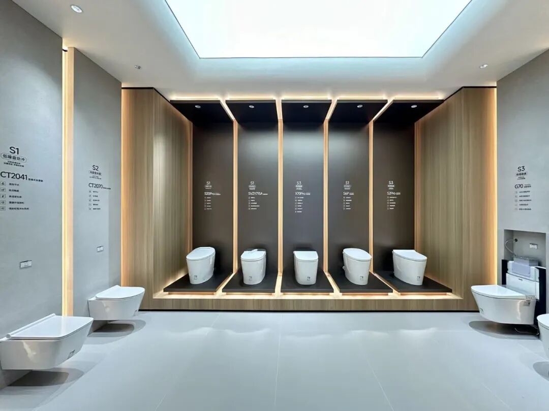 区别于以往的门店布局,广东普宁高端旗舰店通过全新的方式展示浪鲸产品的卓越品质。店内品类陈列与场景化分区展示相得益彰,以体验式设计、场景式布局为特色,智能马桶、浴室柜、淋浴房、五金等产品一应俱全,满足了浴室空间装修的每一个细节需求。同时,基于消费者的生活习惯与审美需求,店内布局合理有序,顾客动线流畅自然,产品陈列井然有序,充分展现了品牌对品质的不懈追求。