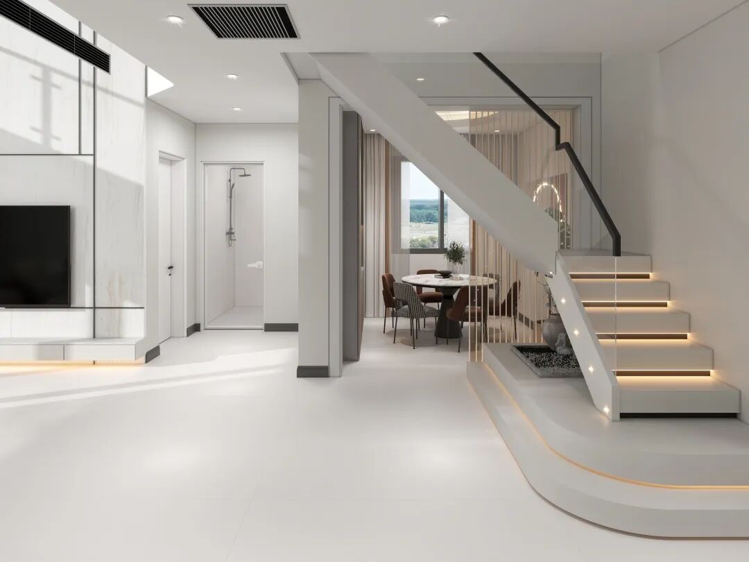 光泽度控制在10-15°,光线柔和不刺眼,特别适合无主灯设计的现代家居