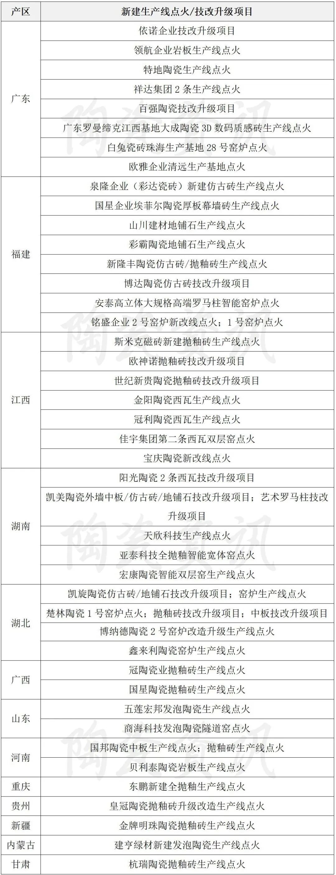 2025年陶瓷行业新建与改造生产线达51条