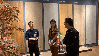 了解完KT瓷砖在商业空间的创意应用后,周总把蔡老师和主持人带到二楼,向大家展示木纹砖更加全面细致的家居空间应用。KT瓷砖不仅给木纹砖品类带来了很多创新的设计风格与概念,还在实际应用上,革新铺贴工艺。