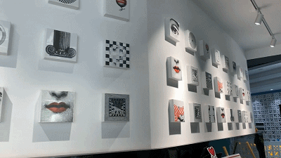 产品展示区另一边的瓷片喷画吸引了主持人孙青的目光。邱总介绍到:这其实是麦迪奇展厅的一个网红打卡地,很多人都会惊奇于这些“画板”其实是瓷片,而忍不住会伸手触摸感受。一片片只有200*200大小的瓷片上,画有颜色各异,细节精致的艺术喷画。