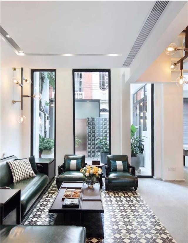在位置偏高的老房子的阳台上,换上简单的黑色框架,改造成L形长窗,别具情调。