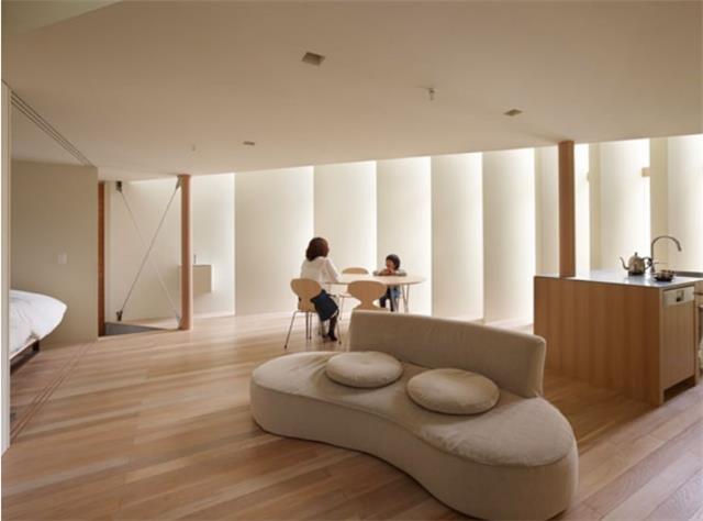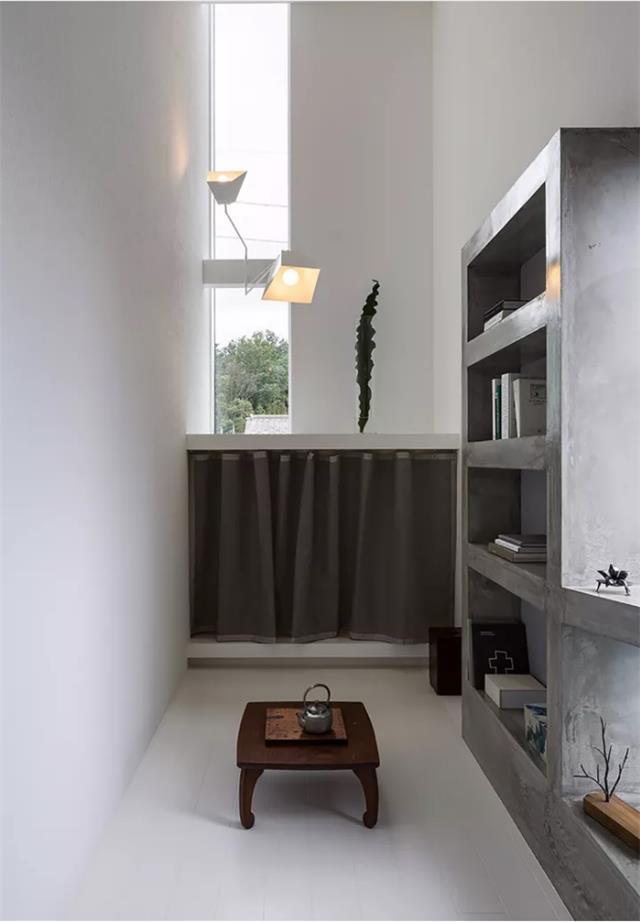 整体统一色调,大量留白,仅有一个小方窗引入室外的光线,这是园林意境和现代设计完美结合,这个唯一的小方窗可以位居正中,也可以偏居一侧。
