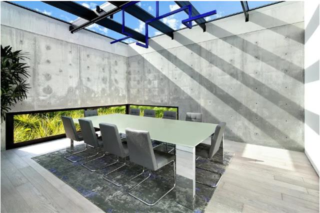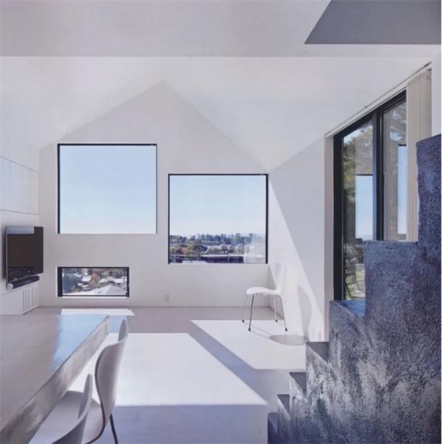 这栋售价 2980 万美元的极简豪宅则将L形长窗放置在了底部,在这样的“藏三点漏一点”的空间,不仅具有很好的私密性,还可以欣赏窗外的美景。