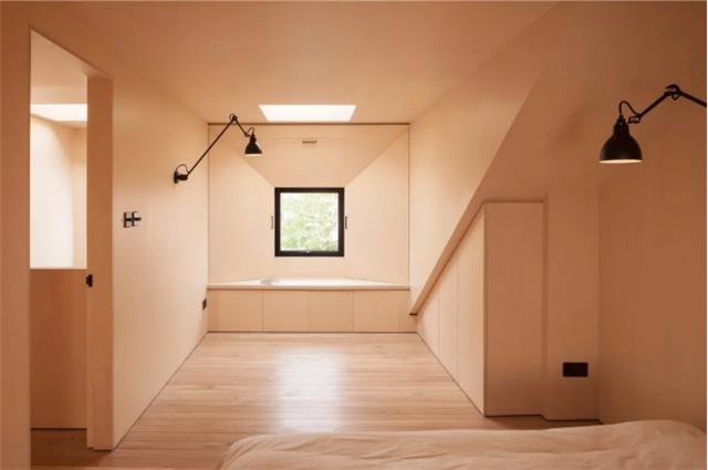 屋顶开一个圆形窗户,增加空间的造型感。