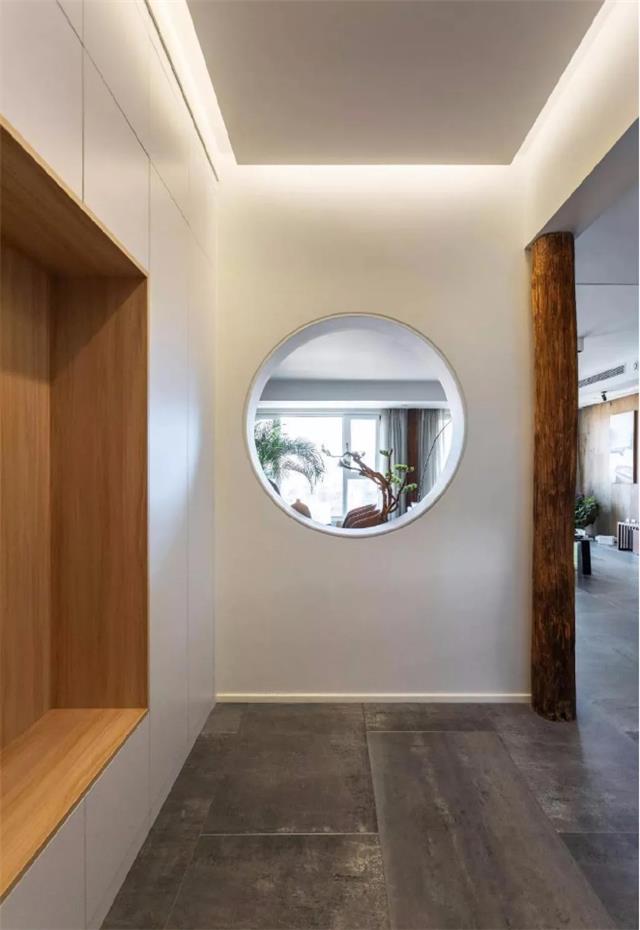玄关处开一个月亮形窗户,引入采光,并与客厅形成互动,妙趣横生!