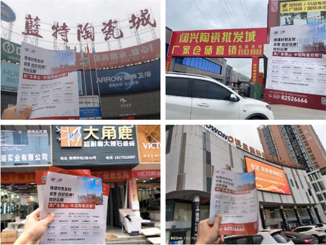 为增加中国陶瓷总部在各地卖场经销商群体内的曝光度,提升中国陶瓷总部的认知度。2023年7月开始,中国陶瓷总部联合佛山陶博会在全国重点省市建材卖场进行地推宣传工作。已覆盖10个省份,19个城市,60个建材卖场,覆盖宣传触达1500+个经销商门店。