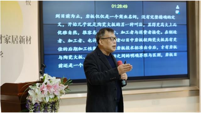 在游学之旅开启前,岩板领域专家—佛山市陶瓷行业协会秘书长尹虹为游学团做了“岩板应用市场与发展”的主题分享。尹虹博士分享到,岩板目前是一个新物种,岩板的应用非常广泛,且未来是一个全增量的市场,凡是有板材的应用的地方,都有可能有岩板的身影。因此我们应该重视岩板。