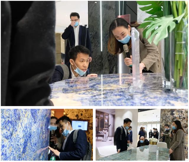 游学团来到博德全球营销中心,先后参观了博德岩板生态展示区、精工玉石贵族汇、精工石材展示区以及晶刚玉独体煅造石材新展厅。
