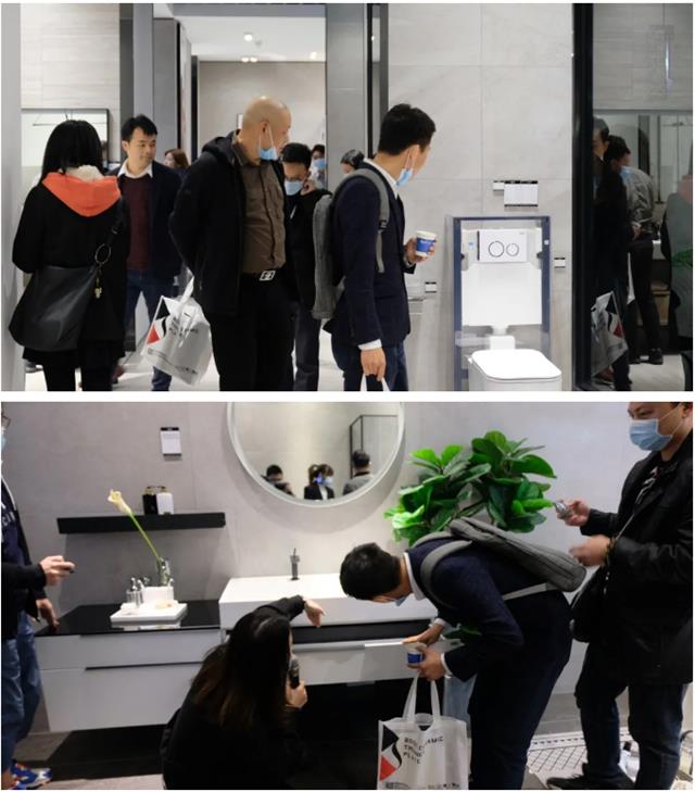 在缇诺卫浴工作人员带领下,游学团了解了缇诺卫浴的浴室柜,浴缸,坐便器、五金水件等产品,工作人员并向他们介绍了缇诺卫浴的产品设计,款式,材质,风格,工艺的知识,加深了他们对缇诺卫浴的了解。游学团们对缇诺卫浴的产品多样性、产品质量、空间设计等都十分赞赏和肯定。