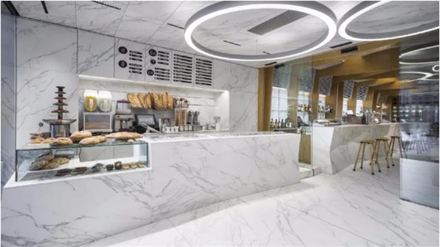 据悉,金牌经销商今年在原有专卖店基础上都增加了岩板的展示,总展示面积比以前大了很多。以前就是瓷砖的展示,今年开了很多新的岩板店,都是经销商开的,所应用的岩板和岩板家居部的岩板是不一样的。
