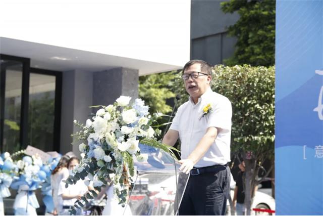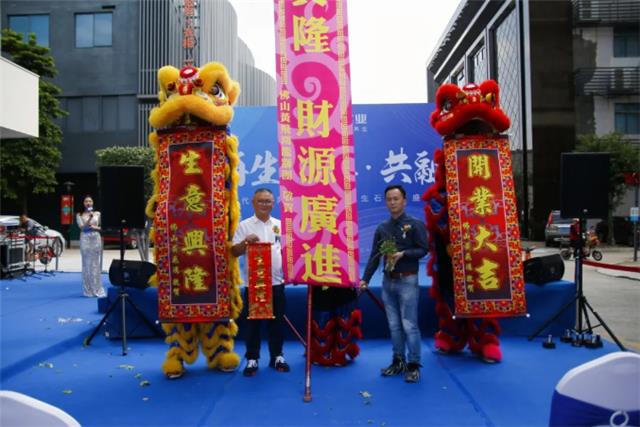 随后,福建鹏翔实业有限公司董事长王少芳先生、中国建筑卫生陶瓷协会副秘书长/佛山市陶瓷行业协会秘书长尹虹博士、意石代品牌顾问蔡祝源先生、中国陶瓷总部运营总经理汤洁明女士、广东省橱柜商会会长李善祥先生、广东省橱柜商会秘书长钟娟女士、广东省橱柜商会监事长甘森强先生、pd杂志与三三体系实践者周亮先生、湛江设计力量佛山会长吴平灿先生共同上台进行了开业剪彩仪式,在一片彩礼鸣炮中,意石代展厅正式开业。