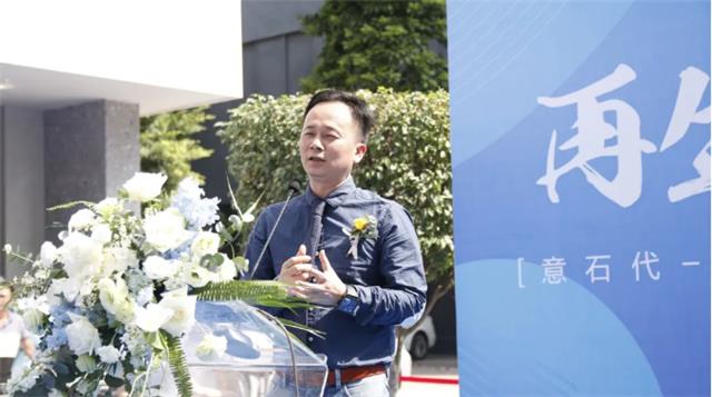 在开业仪式致辞上,鹏翔实业董事长王少芳介绍到,本次[意石代-无限再生]展厅以“无限再生”为主题,聚焦国际前沿设计,瞄准现代工业设计创新与变革趋势,借助设计力量,通过设计赋予再生石不同的特点,突出产品和空间的特色,同时通过不同的工艺设计,给予产品不同的功能和作用,设计赋能带给再生石更深层次的价值,赋予再生石多种的用途和功能,有意探索建材家居行业的设计产业链能,形成以设计力引领并驱动再生石研发及迭代的创新模式,推动设计产业与家居行业融合发展。