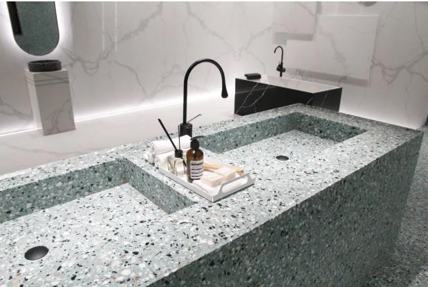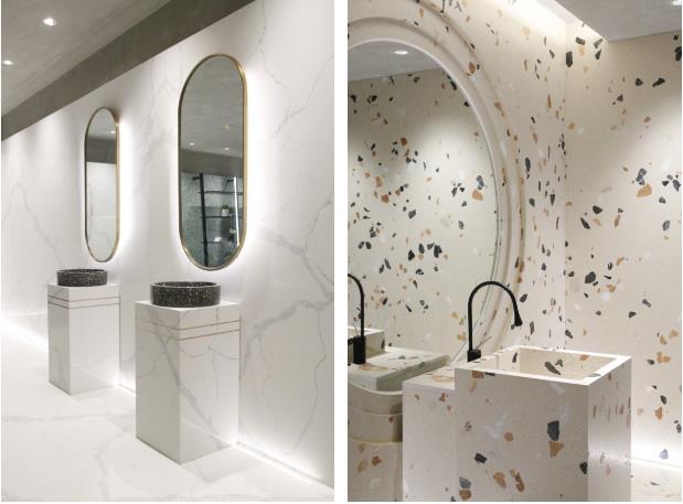 好的设计师,对于自己所使用的材料,必须有足够的理解。好的设计师,对于自己所使用的材料,必须有足够的理解。随着新展厅神秘面纱揭晓后,在鹏翔实业董事长王少芳的带领下,现场嘉宾、设计师们参观了展厅。[意石代-无限再生]展厅以创新性的经营理念,对佛山总部展厅进行全面升级,是集设计、技术、工艺、艺术为一体的展览展示馆,旨在通过打造设计技术交流平台,让设计师们能够在交流当中,认识更多关于再生石材料和技术的知识,并运用到空间项目之中。