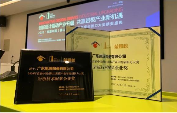 11月2日,2020年中国(佛山)岩板产业年度创新力大奖荣耀榜在佛山智慧新城隆重召开;大会旨在更好地规范和鼓励岩板行业的发展,树立产业品牌标杆,引导企业规范经营,培育更大的岩板产业集群;在颁奖会上,广东施琅陶瓷被授予【岩板技术配套企业奖】荣誉。