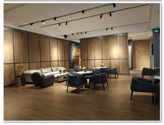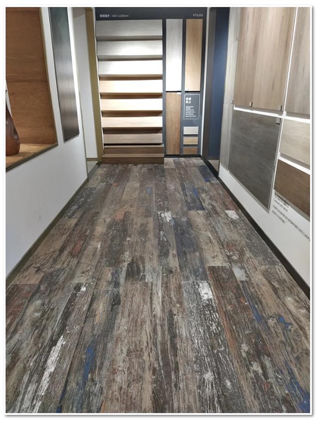 乍看之下没有发现木纹砖的踪影,倒像是用不同的实木装饰的空间,在导购的解说下,才知道这满满都是木纹砖,从地面,到墙面。