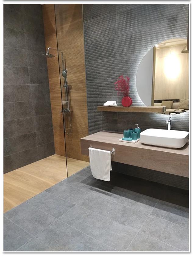 干湿分离的卫生间太重要了,在卫生间使用的早晚高峰期,实在太需要的,瓷砖的防滑性能也尤其重要,不能贪图便宜而降低对生活品质的需求,颜值也很重要,木石结合的卫生间,能上墙能下地,刷新了我对木纹砖应用范围的局限。