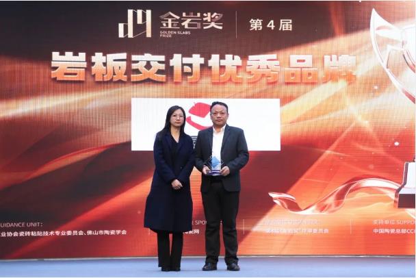 依据专家团走访调研得出的数据和评价,第四届金岩奖设立了综合实力、生产研发、设计应用、安装交付、市场终端五个类目、共25项大奖。活动现场,黄惠宁、胡雪艳、劳天助、刘石分别为获奖的优秀岩板品牌和岩板相关品牌颁发了奖杯及证书。