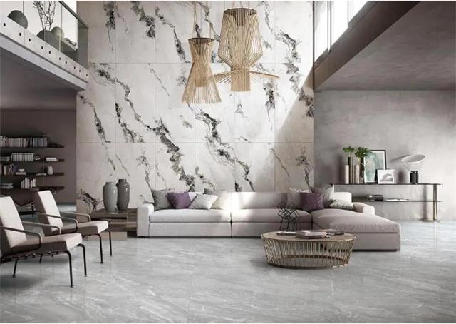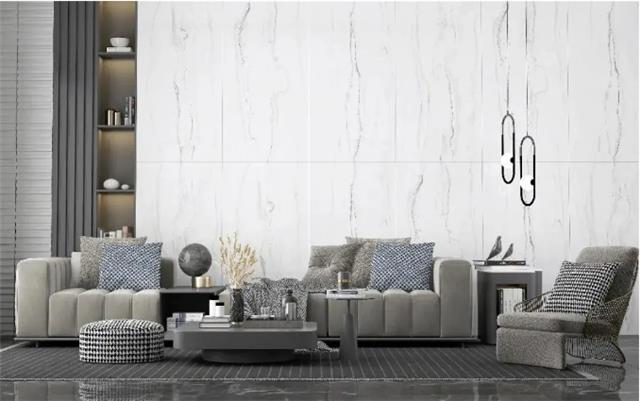 相比小规格瓷砖,750×1500mm规格大板的砖面上可承载更多的纹理元素,充分还原天然石材的纹理效果,装饰性更强。