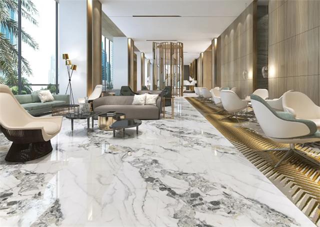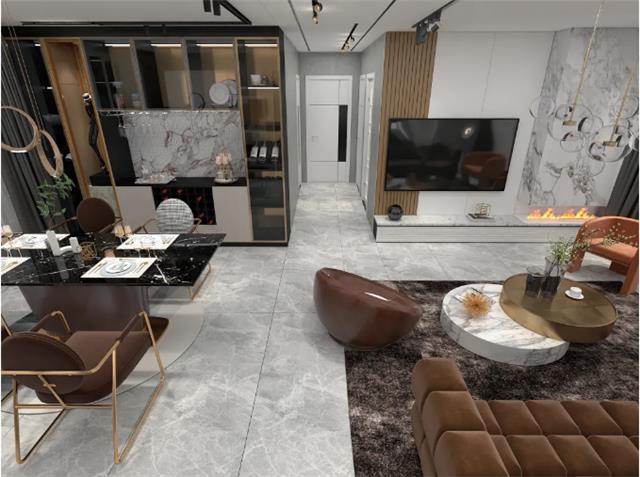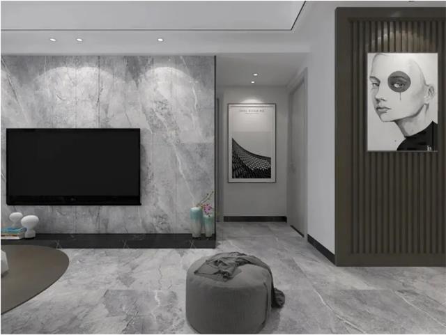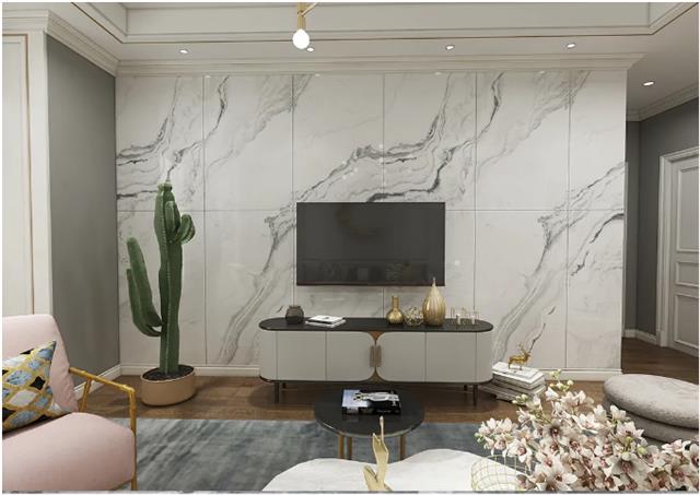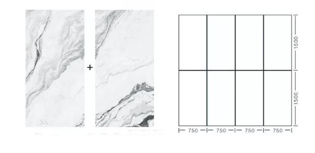 目前我国刚需人群需求量最大的,也是销售量最大的户型是90~128㎡,这一类新建住宅客厅尺寸多为3×9m,如果用750×1500mm规格大板铺贴,刚好只需用24片就可以铺满。