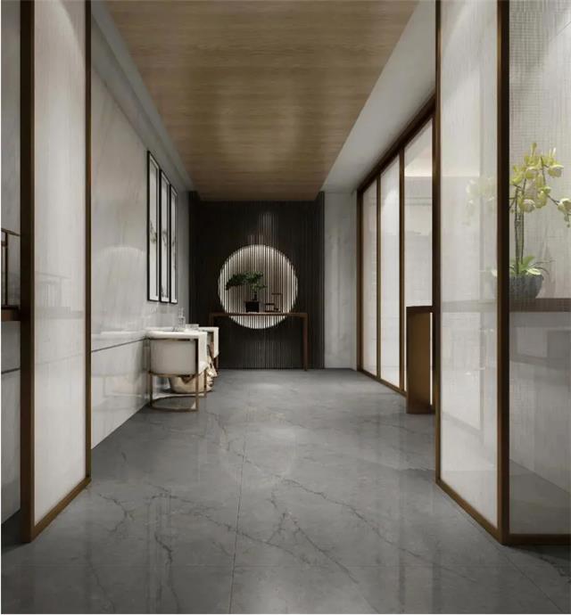 此外750×1500mm规格,除了适合上墙,墙地一体铺贴效果令人震撼,尤其连纹大板使空间感更强,在视觉上将空间拓展到最佳,展现高端生活姿态。