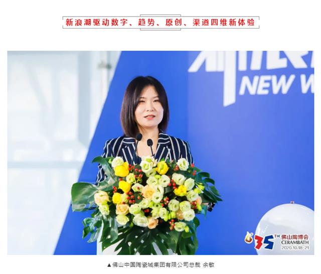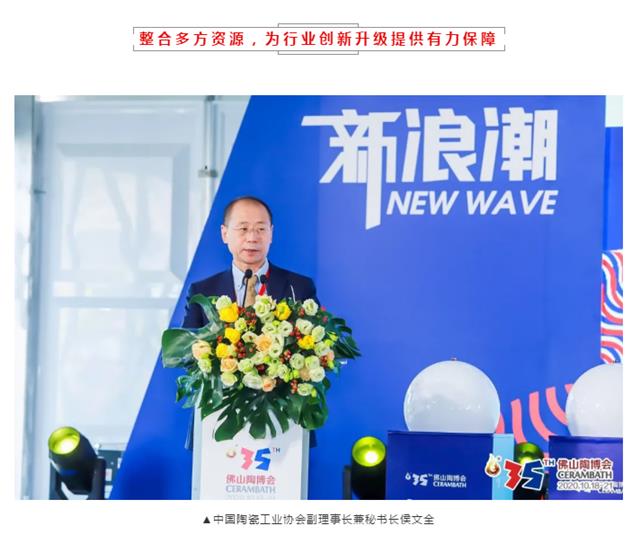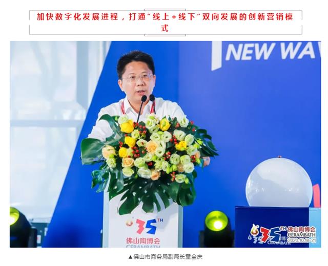 余总介绍到,在经历了9个月的筹备后,今天开幕的线下及线上佛山陶博会以“新浪潮”为主题,带给所有参展商与采购商数字浪潮、趋势浪潮、原创浪潮、渠道浪潮的四维体验。