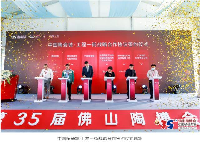 在第35届佛山陶博会隆重开幕之际,中国陶瓷城·工程一街作为中国陶瓷城的重点项目,10月18日上午,在中国陶瓷城展馆·主题活动区(东门广场)举行隆重的战略合作协议签约仪式。
