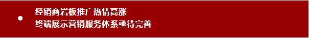 在岩板产品的推广上,不少经销商还处于观望或学习摸索阶段;整个行业成熟化的岩板营销体系仍在探索之中,大部分岩板生产企业往往采取的是先拉高产能铺向市场,占领该领域制高点,再摸索营销模式的发展思路,这使得目前行业的岩板产品主要销往石材行业,“卖的是板材”,还没有形成真正的品牌化,即没有形成成熟化、系统化岩板的设计、展示、运输、切割、加工、铺贴、综合服务等链条,这也是目前全行业需要努力的方向。