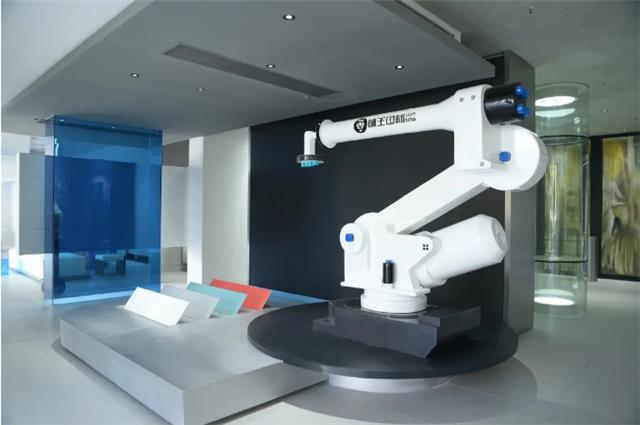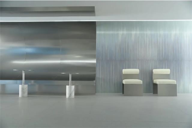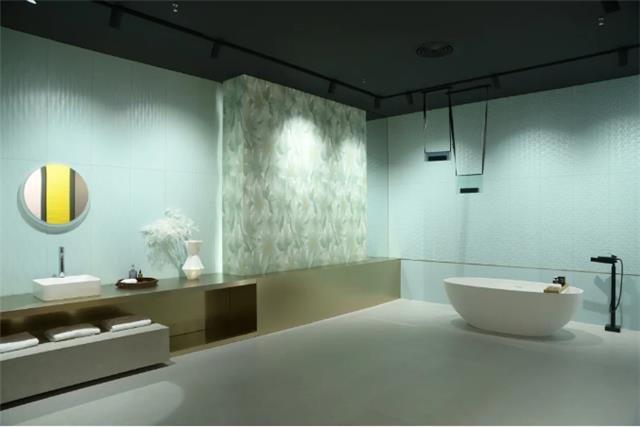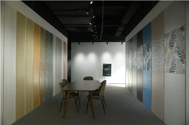 展厅二层为产品选材区。顺着楼梯视觉的延展,展示区有犹如画廊般陈列瓷砖,在欣赏立体空间层次的同时,感受狮王瓷砖的独特之美。狮王拥有两大研发团队,以工艺质感砖面为核心,专注工艺运用, 复合叠加、灵活创新,精雕细琢质感砖面无限可能,提供家居、商业、品牌等空间高定服务,整合多品类产品服务全球合作商,提供一体化设计、一站式挑选、一揽子服务。
