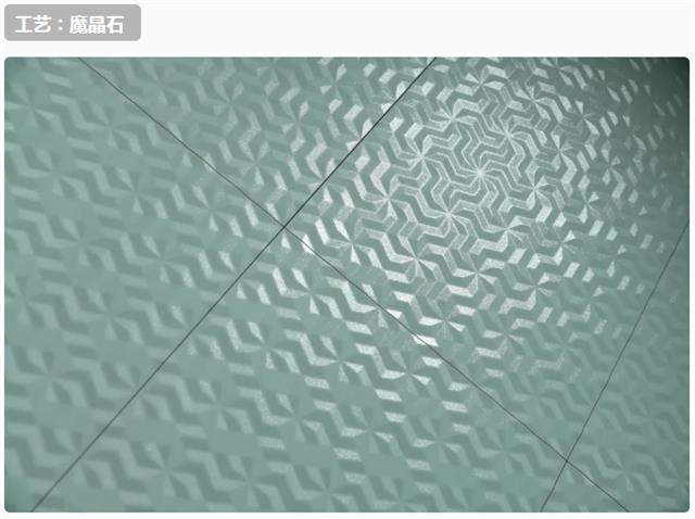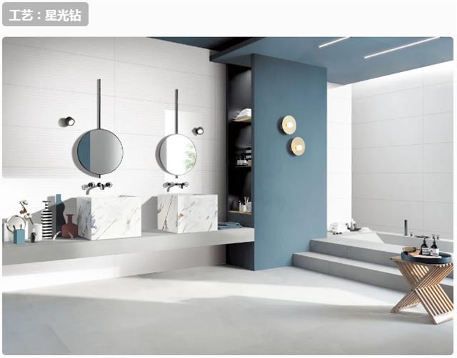 将超细晶石经过精密研磨筛选,研制成特制晶石彩料,以先进的喷墨技术喷于釉面还原水晶原石状态,特殊的淋釉工序,高温烧结,颗粒状的细腻肌理质感更强、触感柔和。焕现净澈亮泽、精致剔透的视觉和触觉质感效果。