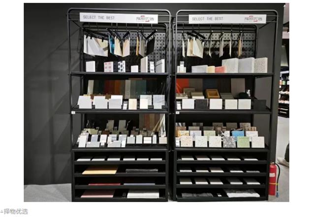 各个展厅星罗棋布,往往令买家十分不便。选材中心就以总部500余家品牌为依托,每家提供10到15款新品小样,集聚3万款陶瓷卫浴新品,免费为工程买家、设计师提供便利快捷的线下线上选材平台,通过买家中意的产品来匹配商家。疫情前,总部基地每年把上千批的买家匹配给客户,其开创的“择物优选”模式受到众多设计师的青睐。